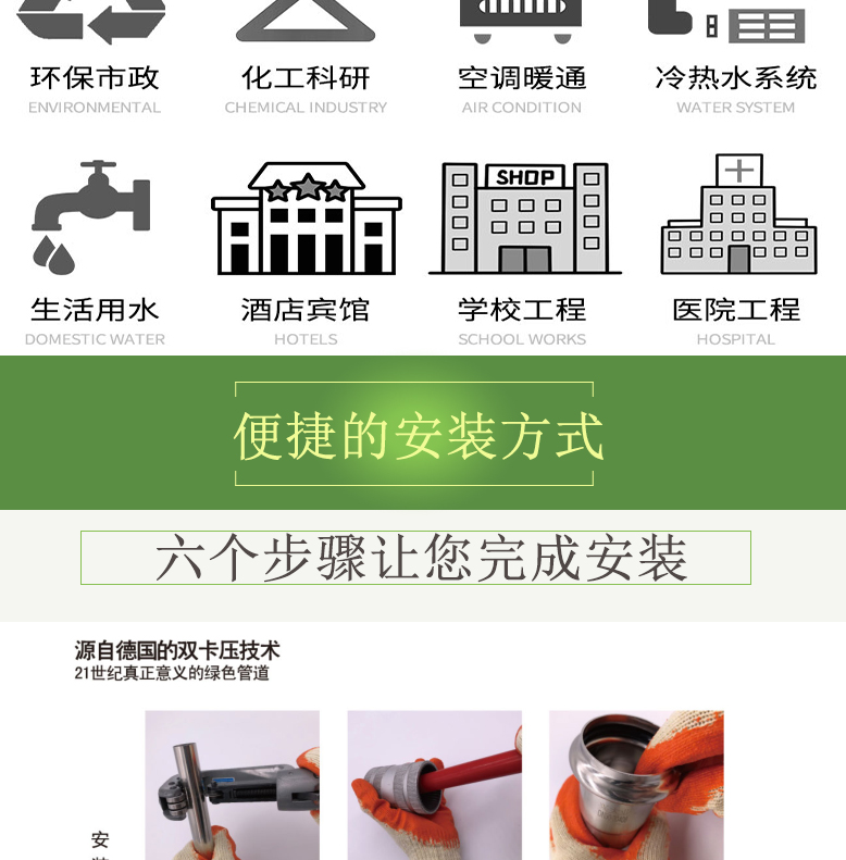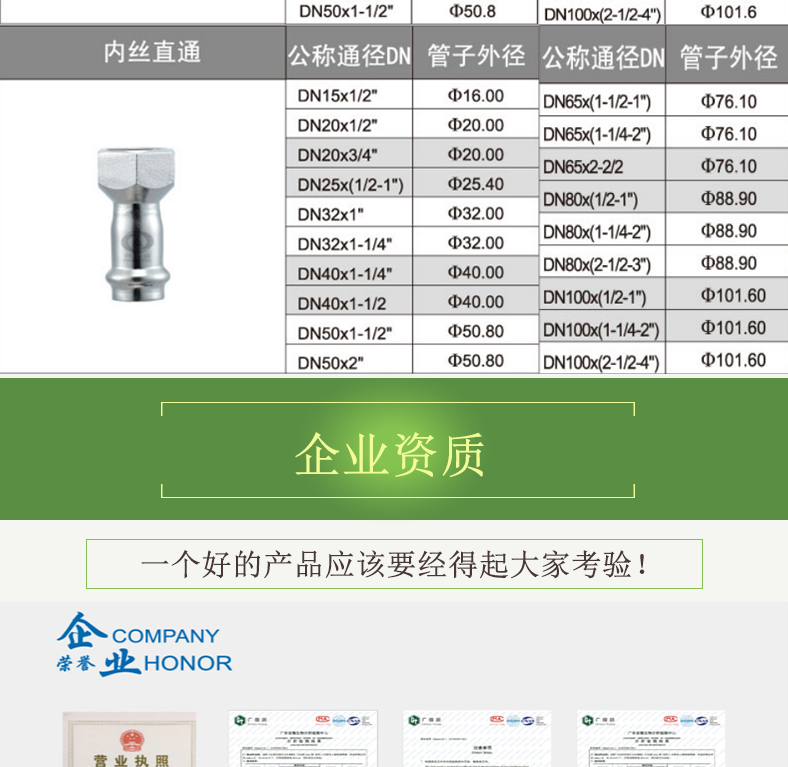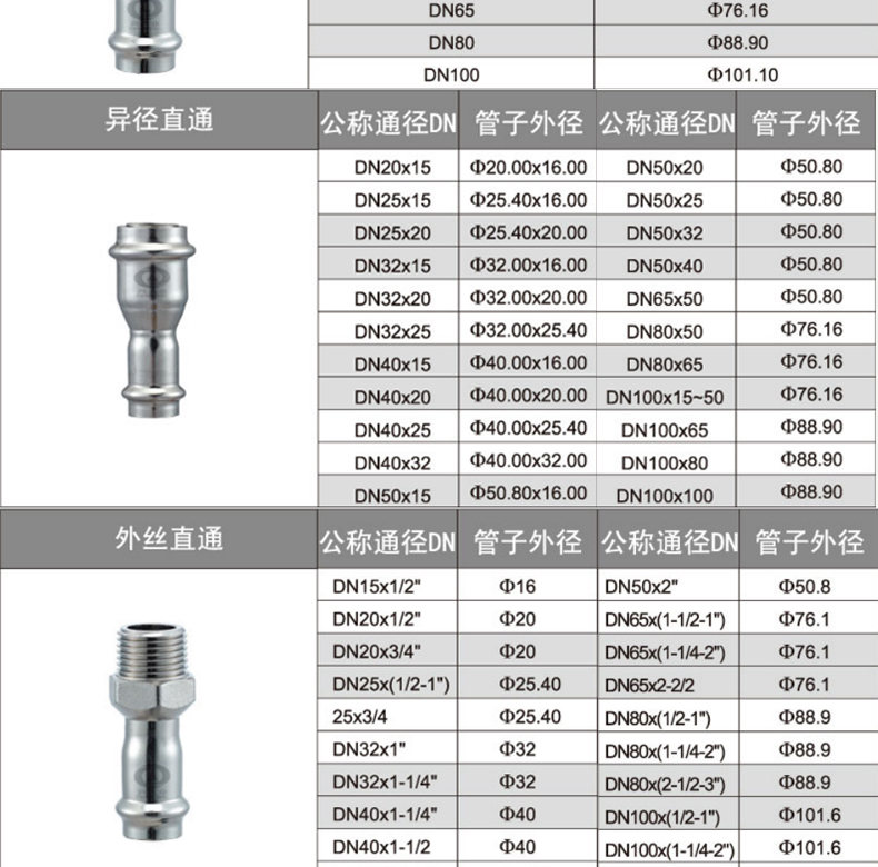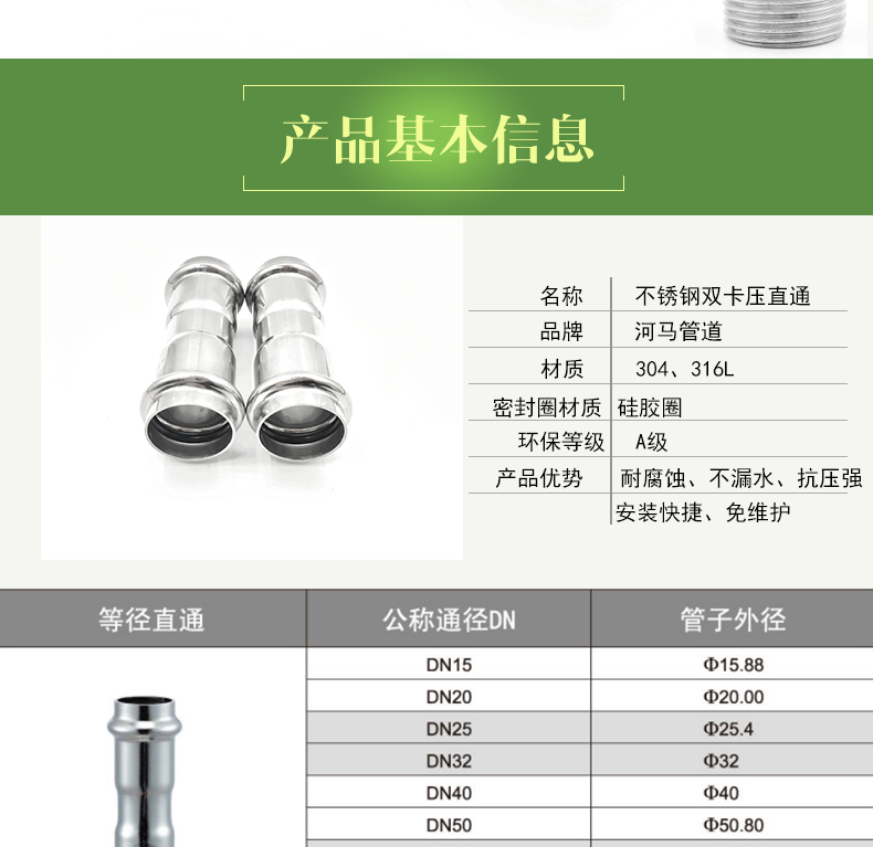 产品详情:河马管304不锈钢内齿直双卡压转换